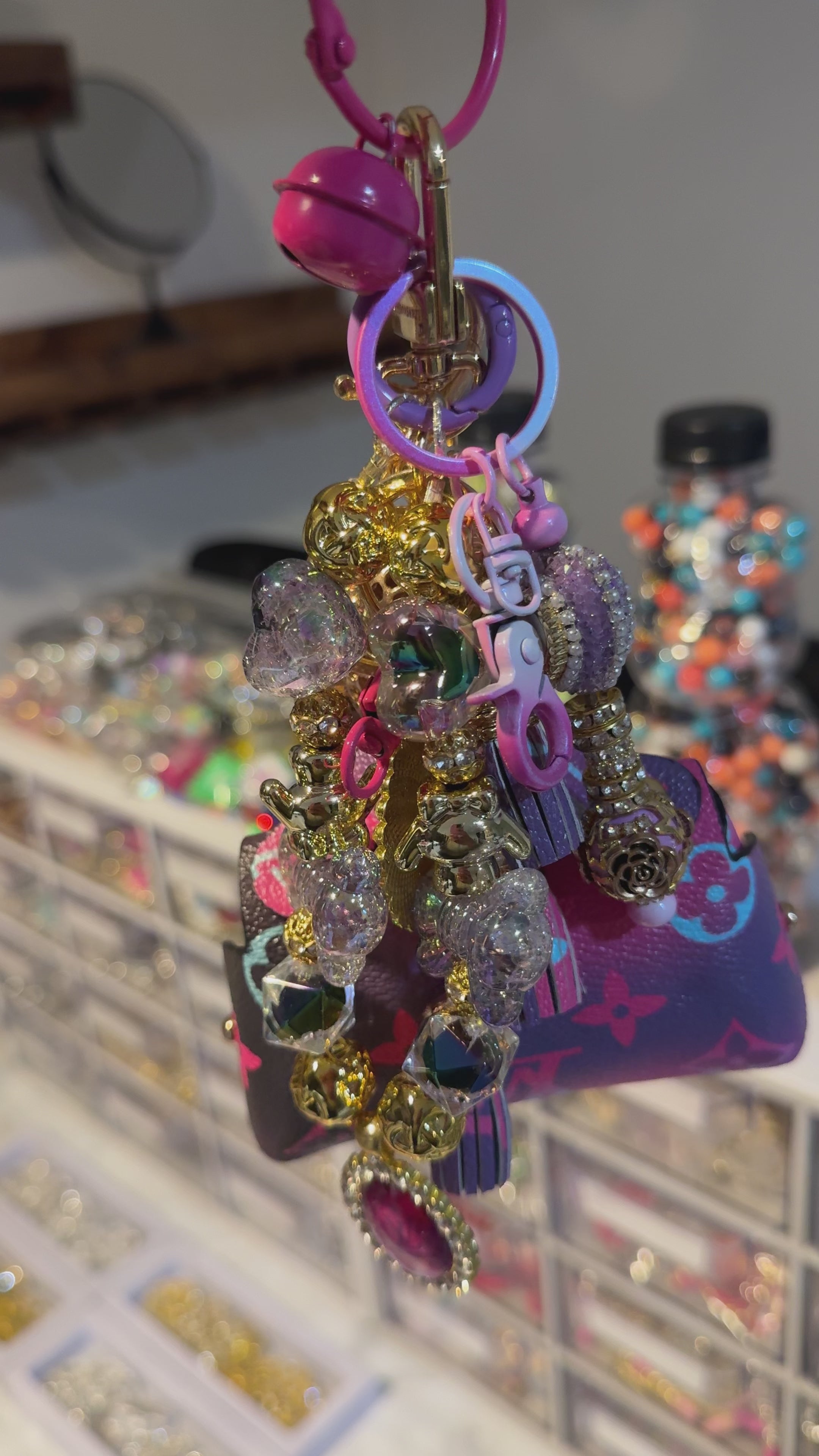 This designer-inspired mini bag is sure to be an absolute attention grabber. Filled with luxury beads and charms, all of my mini bags are handmade and amazing quality. You’ll never find another one like it. NOTE: The mini bag can be opened to put small items inside (AirPods, mini lipgloss, keys, money). And all parts are detachable.