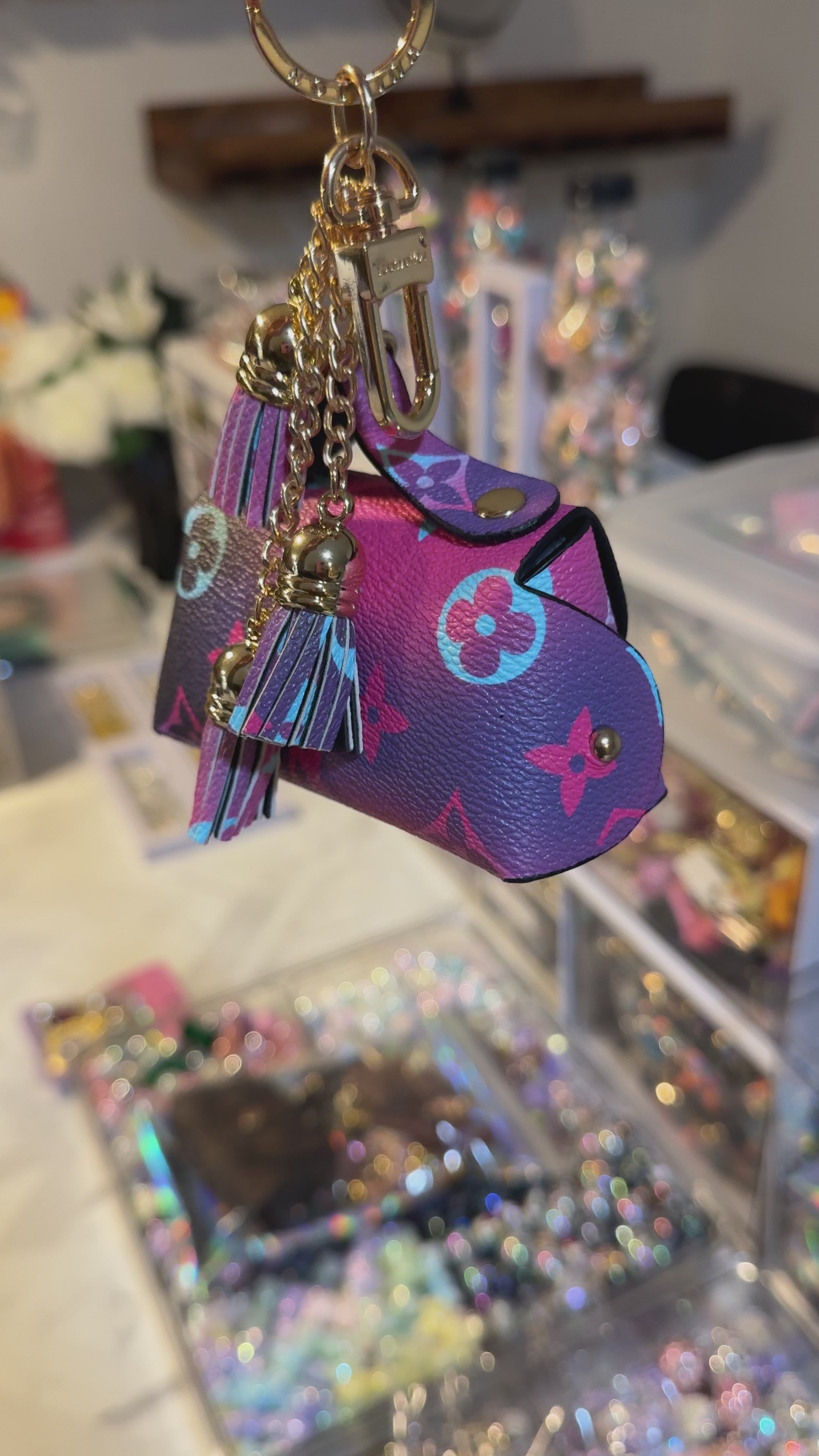 These mini bags are the cutest and make the best little accessory. Use them to store mini cosmetics, money, AirPods and more. Each bag is LV inspired and genuine leather with the designer name engraved throughout. Add it to your keys or use it by itself, win-win.